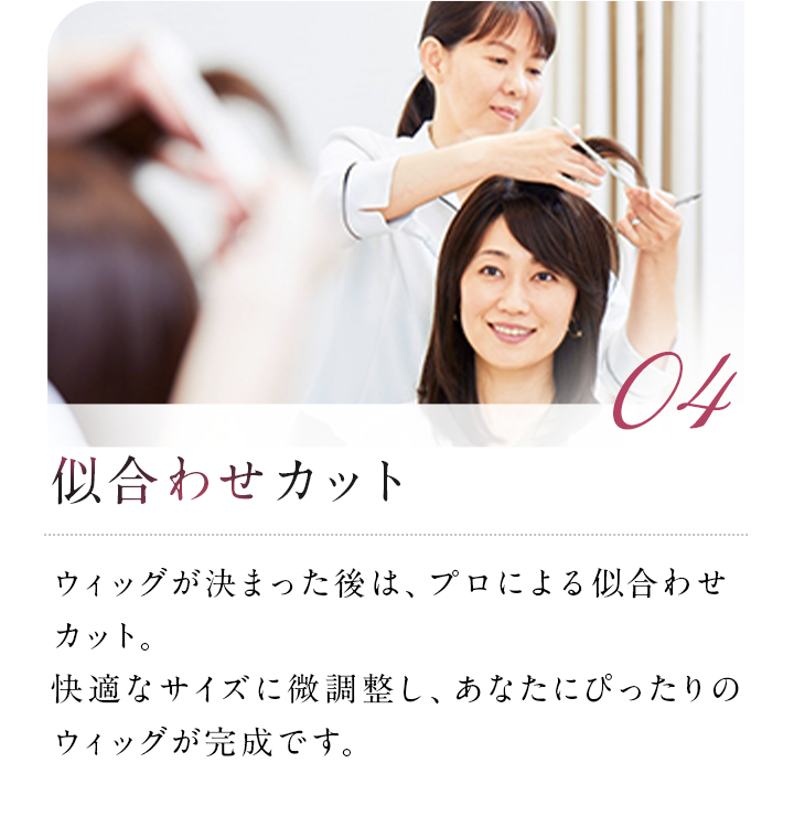 豊富なラインナップとスタイリストのカット技術※で世界に1つのあなただけのウィッグが出来上がります。