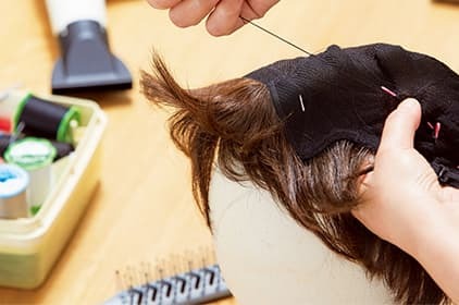 脱毛から回復するまでの間、毛量は変化していきます。いつもフィットした状態で着用していいただけるよう、サイズ調整を行う際は、11箇所を測って手縫いで立体的に仕上げていきます。