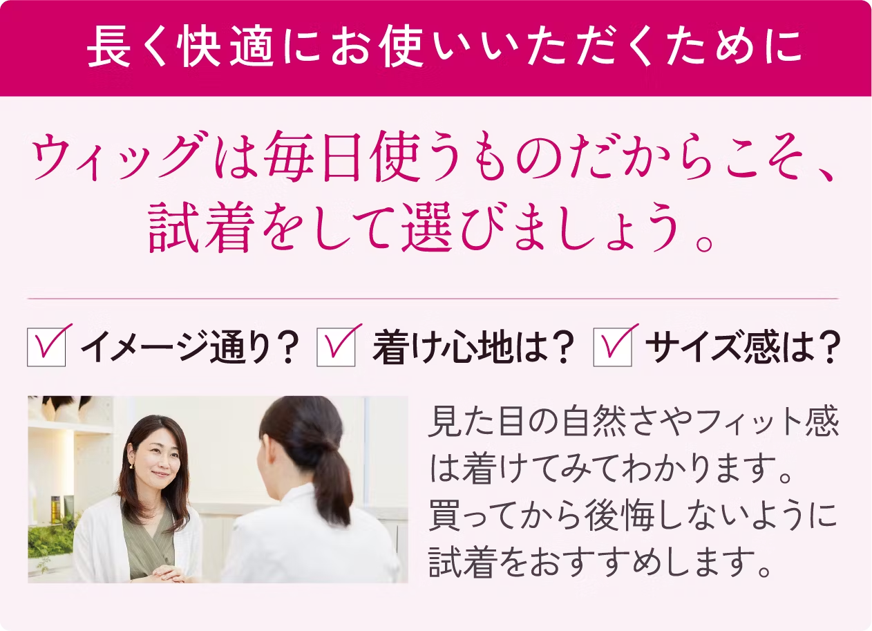ウィッグは毎日使うものだからこそ、試着をして選びましょう。